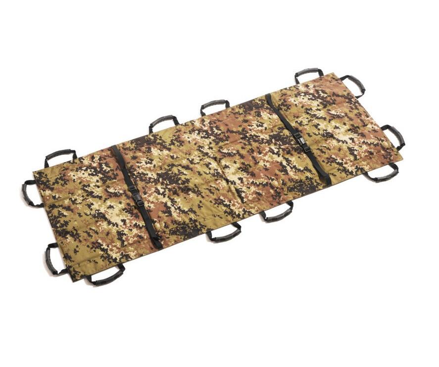 La barella dispone inoltre di 2 cinghie regolabili in nylon con chiusura a scatto , per fissare saldamente il ferito durante il trasporto. Le 2 asole laterali sui lati lunghi consentono l’inserimento di aste, permettendo così il trasporto agevole da parte di due operatori.