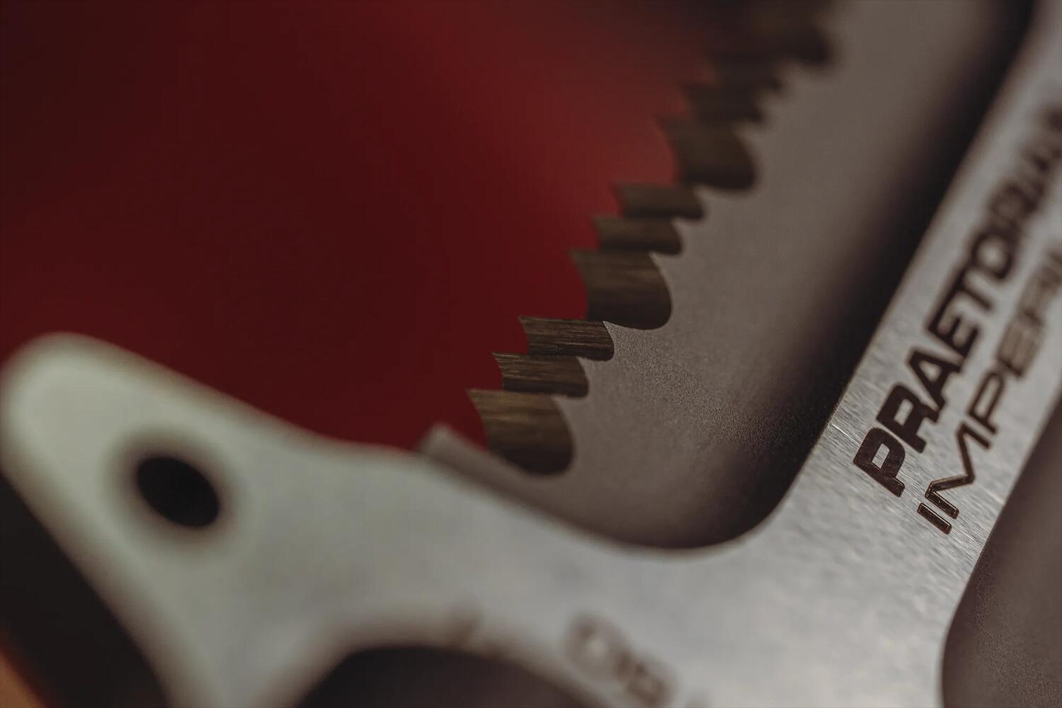 Il nuovo Praetorian Imperium è il restyling di uno dei modelli più ricercati nella storia Extrema Ratio. Interamente riprogettato per rispettare le normative attuali, mantiene l’anima aggressiva del suo predecessore. La nuova geometria di arrotatura rende la lama asimmetrica e capace di aggiungere un coefficiente di taglio sorprendente senza tradire la vocazione primaria del modello con una presenza scenica unica.