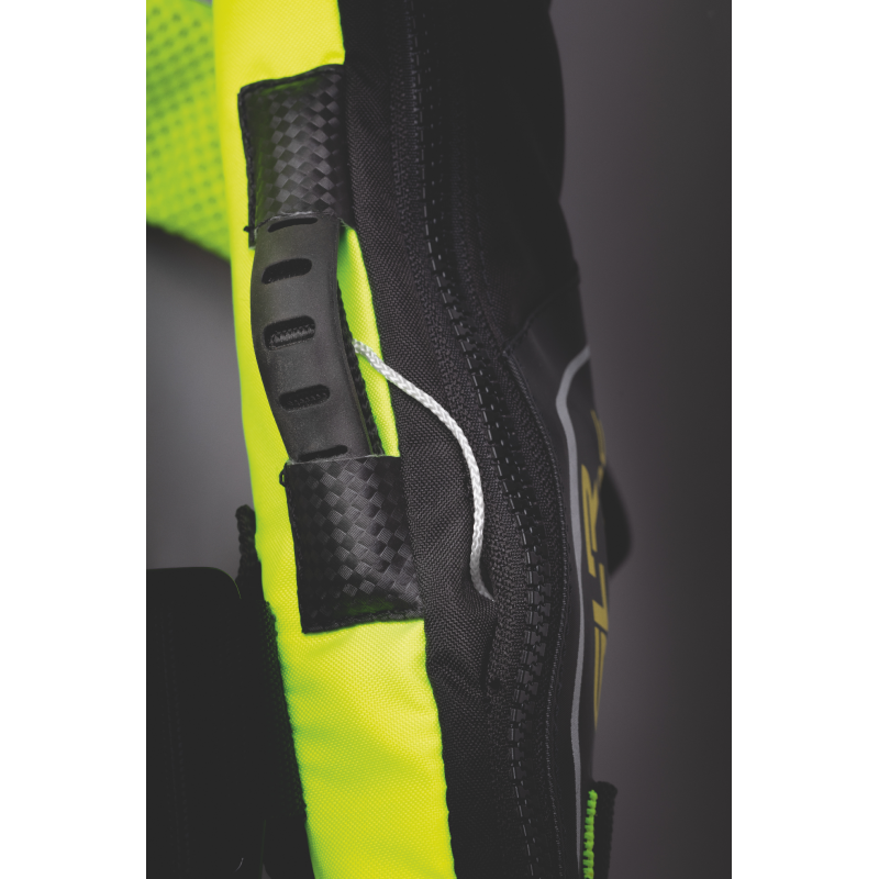 Categoria di galleggiabilità 150 N, ma 196 N reali. Design moderno con materiali high tech e tessuto effetto carbonio, collo ergonomico in neoprene, cerniera a chiusura rapida, tecnologia a doppia camera. Scarico rapido per regolare la pressione e sgonfiare il giubbotto se necessario. Fibbia tipo “stab-lock” in alluminio.