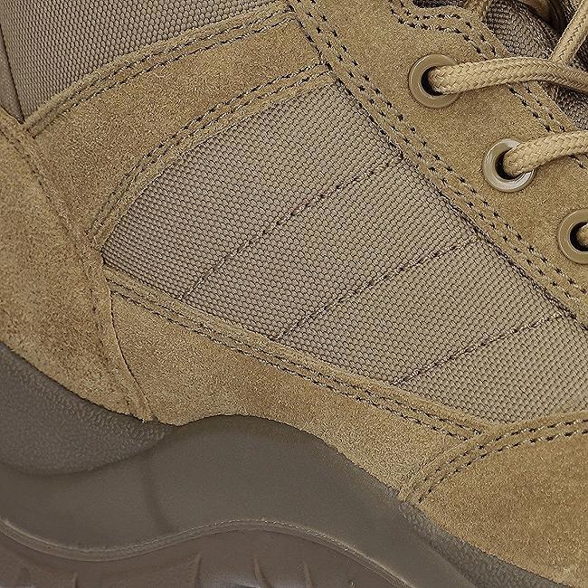 Tomaia in pelle antiruggine abbinata a pannelli in nylon traspirante per massima resistenza e comfort
