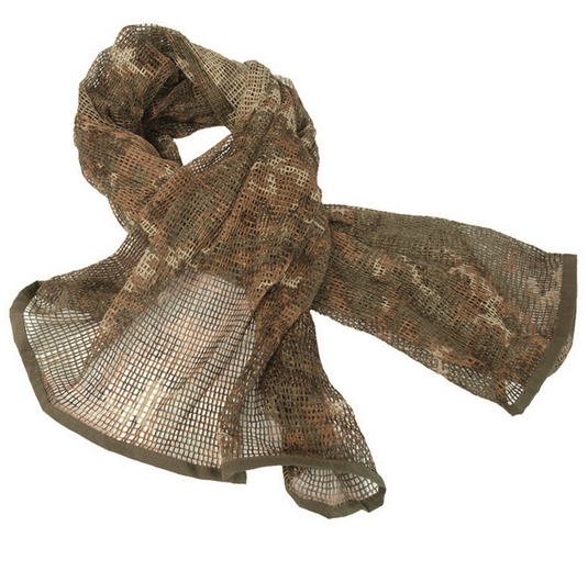 sciarpa a rete in vegetato italiano, può essere utilizzata come protezione del collo/viso o per coprire attrezzature.
